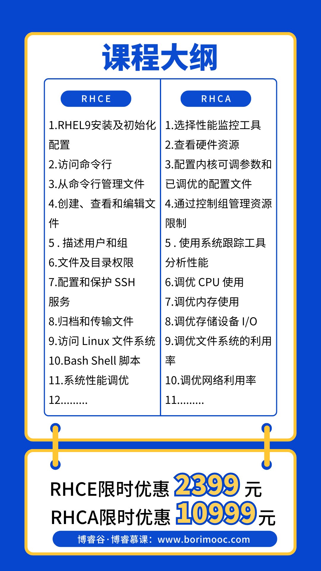想要了解更多关于RHCE、RHCA培训认证的信息,欢迎访问我们的课程页面【博睿谷·博睿慕课】。立即报名获取专业技能提升!您可以随时咨询博睿谷团队(电话:18503067430/18503067429,同微信号),或者通过QQ:3997916003与我们取得联系。
